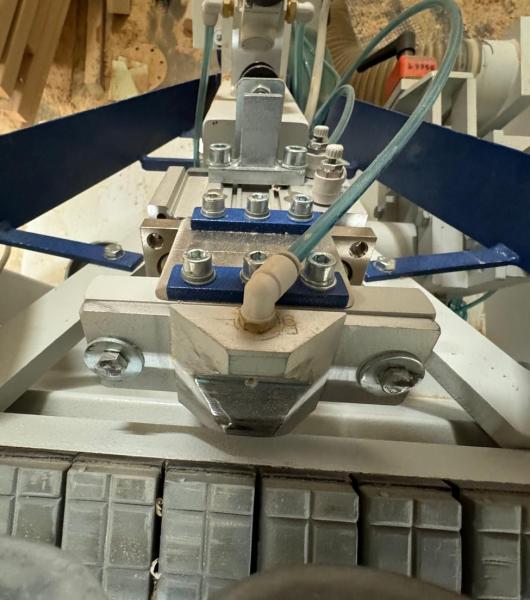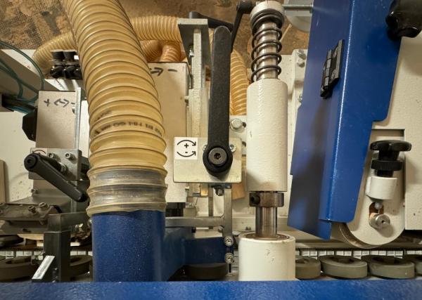 | Ausstattung: | Kantenschleifen Oszillation Profilfräsen oben/unten Profilschleifen oben/unten Vorschub |