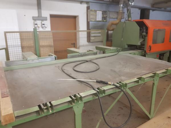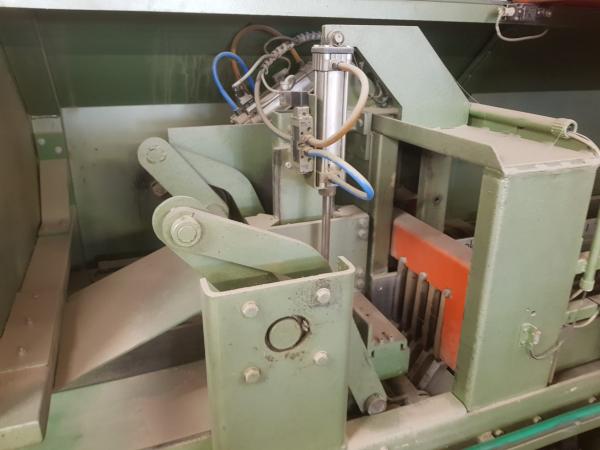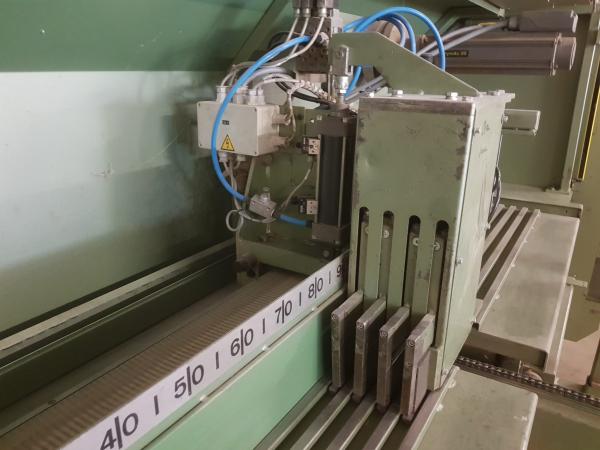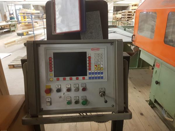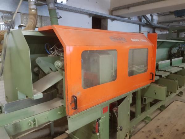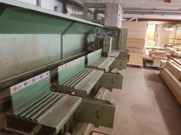 | Arbeitsbereich: | Schnitthöhe: max. 120 mm Schnittbreite: max. 280 mm Eingangslänge: max. 4.700 mm Säge: 5,5 kW Sägeblattdurchm.: 500 mm |